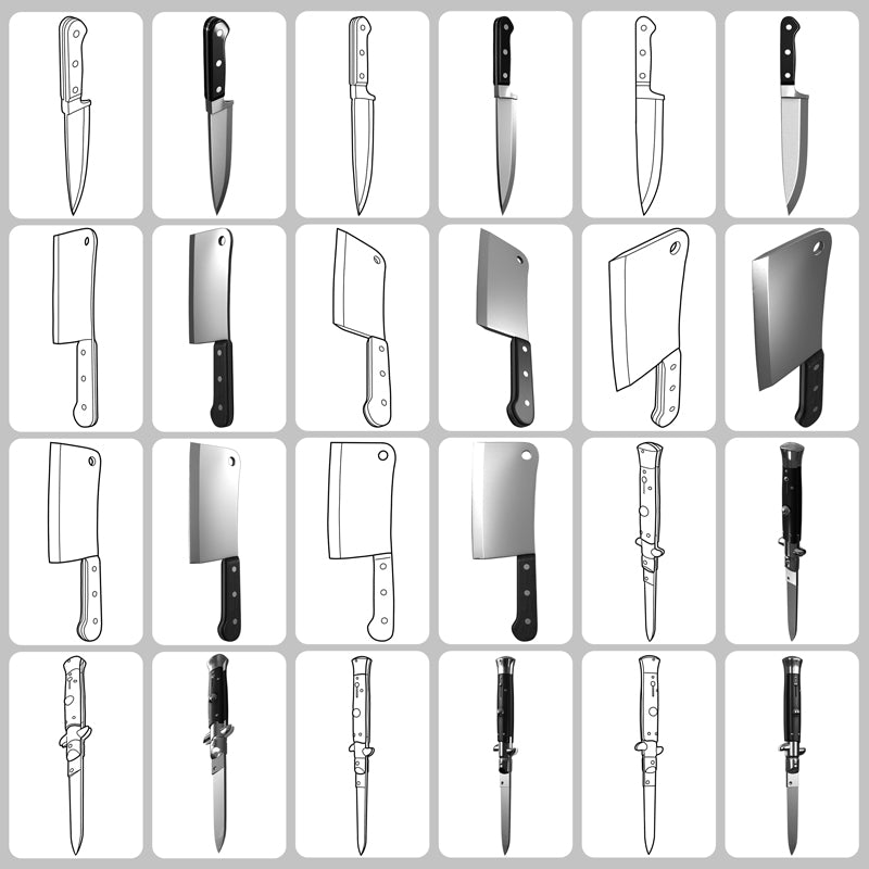 • Each knife shown from multiple essential angles for perfect perspective in any design.